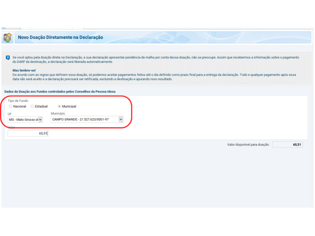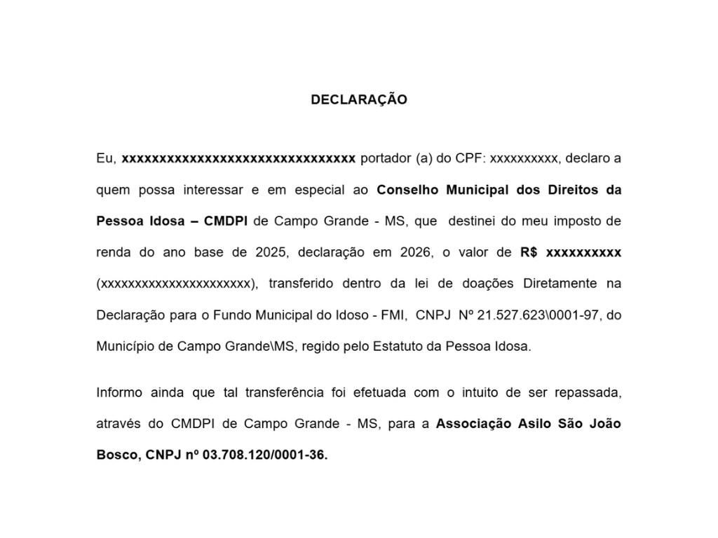Clique AQUI para fazer o download do modelo de declaração de doação.